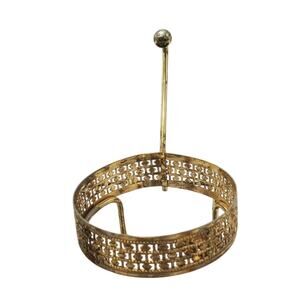 This vintage Mid-Century Modern 6-piece chip and dip set by Anchor Hocking originates from America and features a gold and frosted Fleur-de-Lis design. The set includes a large glass bowl (10.75" in diameter), a matching dipping bowl (5" in diameter), a gold tone metal clip-on holder, and 3 individual serving bowls (4" in diameter) Our Inv# HW 013