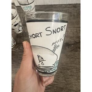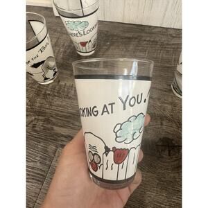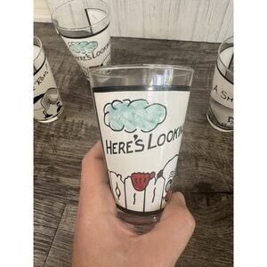 These glasses are in absolutely beautiful condition. The eyes are an illusion so when you move the glass the eyes move with you. These glasses are VERY rare. It is common to see the shot glasses but not the larger glasses. Please refer closely to pictures and feel free to reach out to me with any questions.