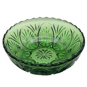 Vintage MCM Anchor Hocking Winter Green Cameo & Star Medallion Glass Salad Bowl