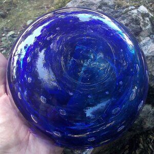 Vintage MCM Art Bubble Glass Ashtray Trinket Blue Cobalt - Measures 8" Diameter x 3" High - Excellent Condition, No Flaws