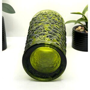 Vintage MCM Avocado Green Grape Design Glass Vase Approx. Size 7.5" Tall