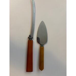 Vintage MCM Bakelite Handles Utensils Tomato Slicing Knife Cake Pie Server