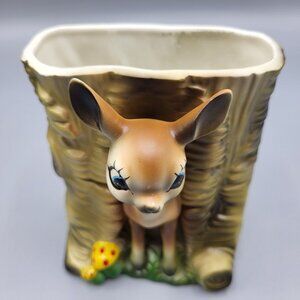 Vintage MCM Bambi Deer Vase Kitchy Planter Deer & Mushrooms Ceramic Table Decor