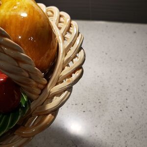 Beautiful vintage 1950s Bassano ceramic hand-painted fruit basket. Marked on underside. Made in Italy.