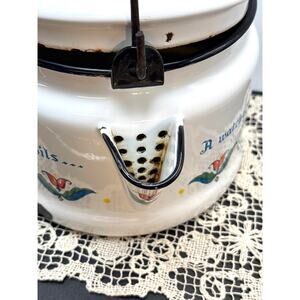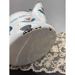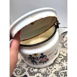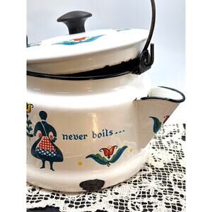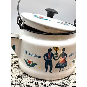 Vintage MCM Berggren Enamelware Teapot Folk Art ‘A Watched Kettle Never Boils’