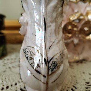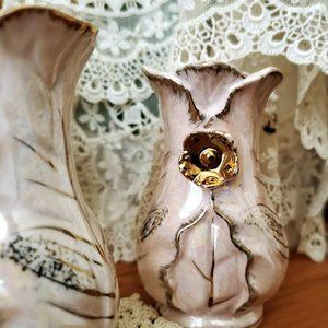 Vintage MCM Betson Pottery Hand Painted Planter & Taper Candle Holders Pink/Gold