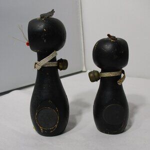 Vintage MCM Black Cat Kittens Magnetic Wood Wooden Salt & Pepper Shakers