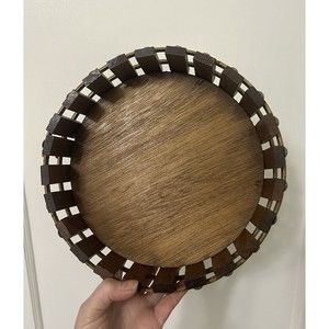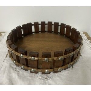 Vintage MCM Boho Rustic Studded Wooden Catch All Bowl Home Decor Plant Nut Tray
