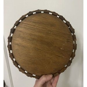 Vintage MCM Boho Rustic Studded Wooden Catch All Bowl Home Decor Plant Nut Tray.
