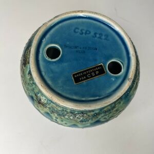 Vintage MCM CSP 522 Secla Portugal Blue Pottery Textured Candle Holder