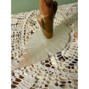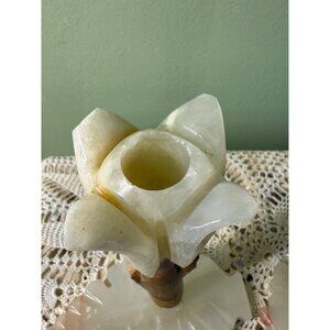 Vintage MCM Carved Onyx Flower Candle Stick Holders