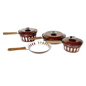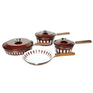 Vintage MCM Catherine Holm of Norway Brown Lotus Enamelware Pot & Pan 7 Pc Set