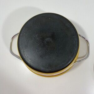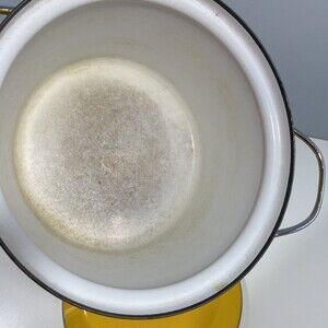 Vintage MCM Cathrineholm 8.5 Pot With Lid Lotus Yellow Norway, See Measurements. Condition is Used.