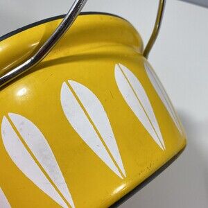 Vintage MCM Cathrineholm 8.5" Pot With Lid Lotus Yellow Norway, See Measurements