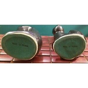 Vintage MCM Ceramic Sitting Black Cat Figurines Hand Painted Green Eyes 8"x3.25"x2.75" Felted Bottom Made in Taiwan