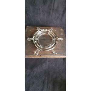 Vintage MCM Clear Glass Ship Wheel Ashtray - Nautical Cottage Home Decor - Boat