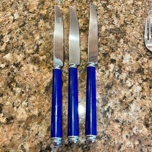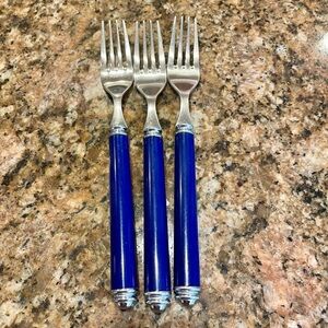 Vintage MCM Cobalt Blue Stainless Flatware 9 Pieces, 3 Place Settings of 3 (KFS)