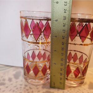 Vintage MCM Culver Glass Set of 2 Rare Pink Diamonds & Gold Highball Glasses 8oz