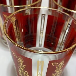 These Vintage Glasses are in Great Condition. No chips or cracks. Some minor wearing on the gold rims. Please review the photos.