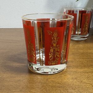 Vintage MCM Culver Lowball Glasses Set of 2 Phra Siam Devadhiraj Thai Goddess