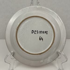 This vintage MCM Desimone Pottery Plate from the 1960s features an abstract rooster design in a vibrant multicolor palette. Handmade in Italy, this round ceramic collector plate showcases the unique style of Cubism and the artistic production techniques of art pottery. With a diameter of 8.25 inches, this piece is a charming addition to any decor, suitable for all occasions. The Italian culture and mid 20th-century era add to the allure of this one-of-a-kind collector's item. NOTE: manufacturing defects - see pictures. No crazing, cracks or chips.