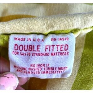 Vintage MCM Double Fitted and Flat Sheet Set Mohawk USA Gold Stripe 80 x 92