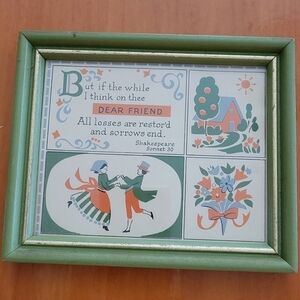 Vintage - MCM Dutch ArtWriter's Quotes Wall Art. Green frames with glass. Shakespeare and Emerson.