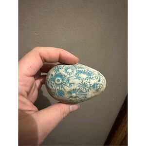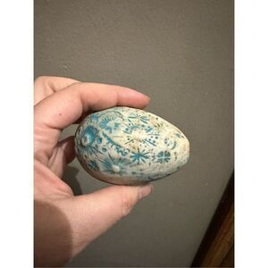 Vintage MCM EC Brinkman Signed Pottery Egg Floral Starbust Retro 3x2”