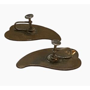 Vintage MCM Earrings Enamel Copper Leaf Screw Back Clip