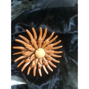 Vintage MCM Enameled Flower Pin/brooch Brown Metal 2” Has chipping on paint. See photos . Still a wearable vintage pin
