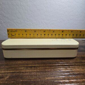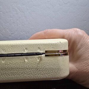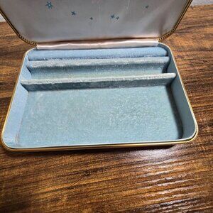 Vintage MCM Farrington Travel Size Cream Floral Jewelry Box Blue Velvet Lining