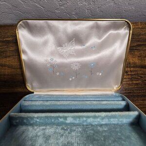 Once upon a time, this charming jewelry box held the treasures of a bygone era. Adorned with delicate floral designs and a whimsical butterfly, it offers a cozy velvet interior to cradle precious keepsakes. Its compact size and vintage allure make it a timeless companion for safeguarding cherished memories.