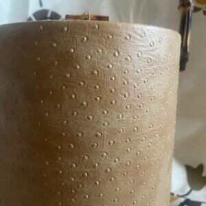 Vintage MCM Faux Ostrich Ice Bucket With Bamboo Handle & Lid READ