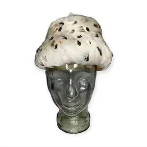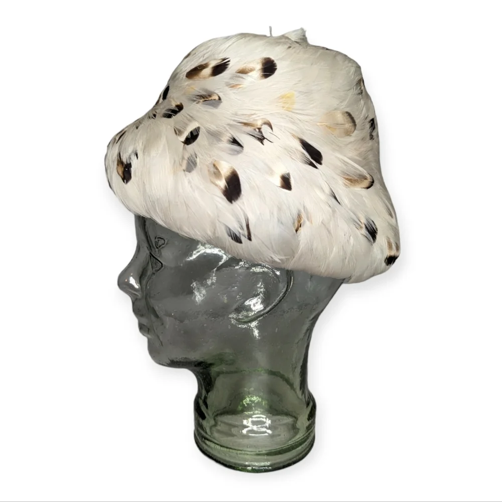 Vintage MCM feather cloche hat. There are spots of discoloration from the vintage adhesive and 1 feather has become detached, see pictures.