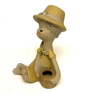 Vintage MCM Figurine UCTCI Japan Stoneware Bud Vase Mod Girl Bucket Hat Boho