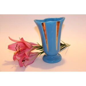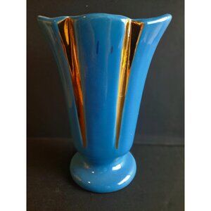 Vintage MCM Flared Blue Vase with Gold Accents | I Love Lucy | Brew Crew