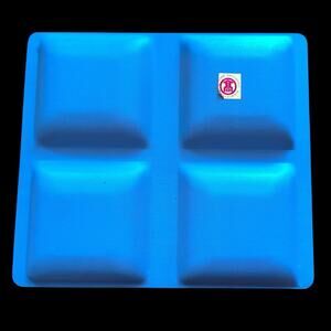 Beautiful vintage Japanese lacquered tray featuring a bold and vibrant blue, green, and purple floral design. The underside retains the original Takashima Exclusive Import label. Perfect for use as a serving tray, display, or to add a pop of Japanese mid-century style to your home.