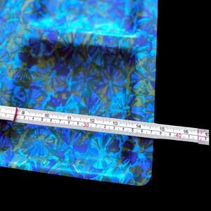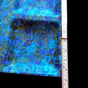 • Design: Blue background with purple, teal, and olive-green floral motifs