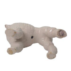 Vintage MCM French Poodle Figurine Ceramic Marked 98 White Red Bow READ
