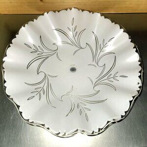 Vintage MCM Frosted Glass Ceiling Light Shade with Etched Leaf Design EUC 12"