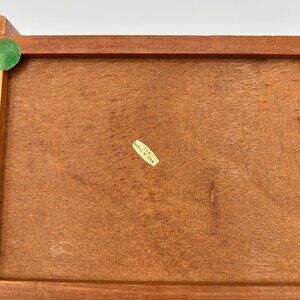 Vintage mid century modern gentleman's wood vanity valet with closed jewelry storage. Measures 9.5" long x 6.5" wide x 3" tall.