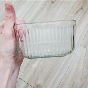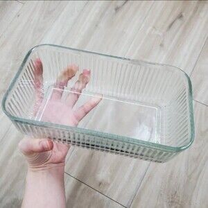 Vintage mid-century clear glass rectangular ridged refrigerator dish. No lid.