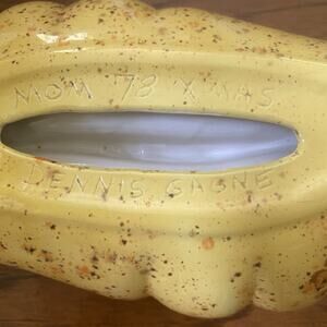 Vintage MCM Glazed Yellow Speckled Ceramic Ashtray Shell Fan Wave Handmade 1978