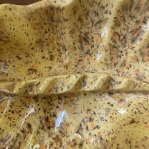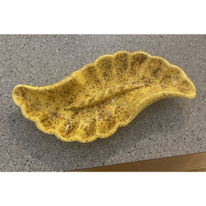 Vintage MCM Glazed Yellow Speckled Ceramic Ashtray Shell Fan Wave - Approx 10.5" long and 4" wide