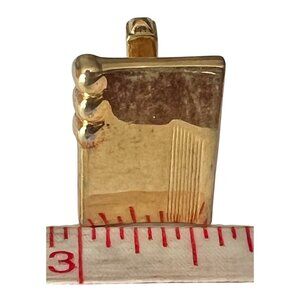 These vintage MCM cufflinks showcase a sophisticated geometric design with stripes and raised dots. The gold tone finish adds an elegant touch, making them ideal for professional settings. With a sturdy construction, these cufflinks ensure both style and durability for the modern professional.