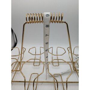 This gold MCM wire wine beverage glass rack is like a personal sommelier, minus the snooty accent. It comfortably holds eight bottles, ensuring your drink collection stays organized and stylishly displayed. The spiral handle adds a whimsical touch, making it easy to transport your vino wherever the party takes you.