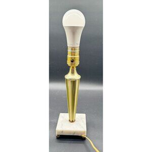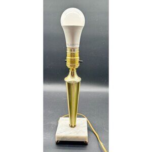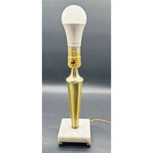 Vintage MCM Green & Cream Marble Base Table Lamp Working 11"H x 3.5"W