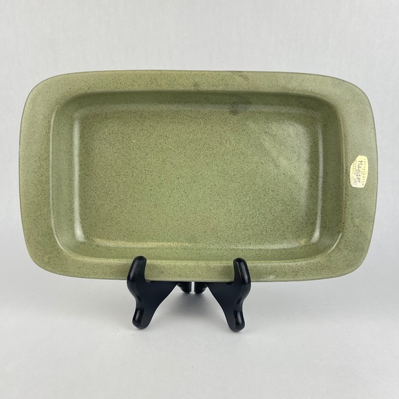 Vintage MCM Haeger 12” Rimmed Rectangle Sage Green Speckled Serving Bowl Platter