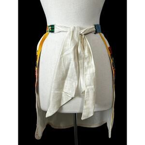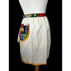 Vintage MCM Half Apron Linen Hostess Pinup Retro Floral