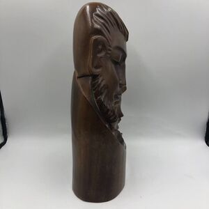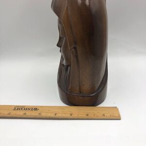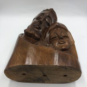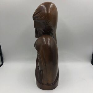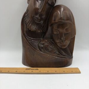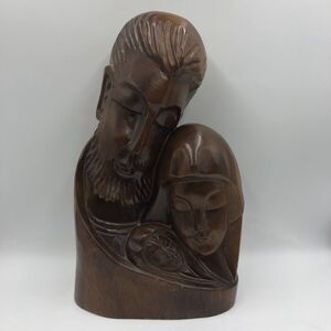 Vintage MCM Hand Carved Wood Sculpture Bust Art Holy Family Jesus Mary Joseph Brown Stained. Sculpture is vintage MCM pre-owned. Please see all photos for visible condition. No original box. This piece of art is on the bigger heavier size. May contain some dust in crevices and a few minor blemishes here or there due to age. Great spiritual religious decorative tabletop shelf accent piece. Approximately 13 inches x 8 inches x 4 inches. Great collectible piece of art!